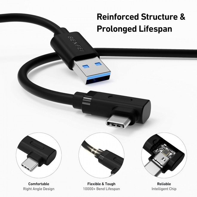 BENFEI's in-house cable production and advanced assembly process deliver a super-soft, tangle-free 1-meter cable that's easy to use with Quest 3, Quest 2, Quest Pro, and Pico 4 accessories.