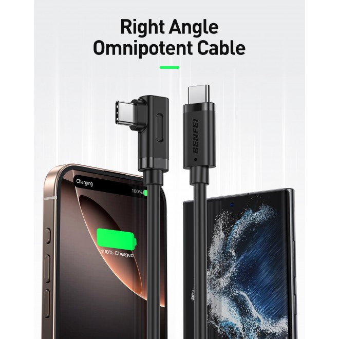 BENFEI 428BK-3M USB C to Right Angle USB C Cable , 90-dgree Angled USB 2.0 Type C Charger Cable, 3A Fast Charging & 480Mbps Data Sync, Durable PVC