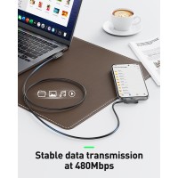 Utilizes USB 2.0 protocol to deliver data transfer speeds up to 480Mbps, enabling simultaneous charging and file transfer.