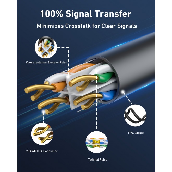 Built with 23AWG CCA conductors and a twisted pair design with cross-isolation skeleton to minimize crosstalk and maintain stable signal transmission.