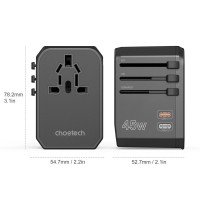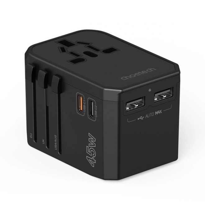 CHOETECH PD6045 GaN Tech 2C+2A 45W Travel Adapter with US EU UK AU Plugs Black