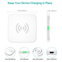 Interfaces:Micro USBPower Input:QC2.0 StandardPower Output:10W(Max)Conversion efficiency:72%(Max)Standby Power Consumption:0.05WShell Surface Temperature:45 °CTransmission distance:5mmItem size:3.6 x3.6 x 0.4inWeight:0.18lbUniversal Wireless Charging Mode:10W Fast-Charge Mode