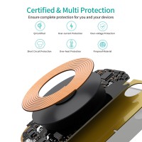 Our wireless charger can identify your phone sensitively and support phone case within 5mm(0.2 inches) while 4mm(0.16 inch) is the best wireless charging distance (Please note that metal attachments or credit cards will interfere with charging ).