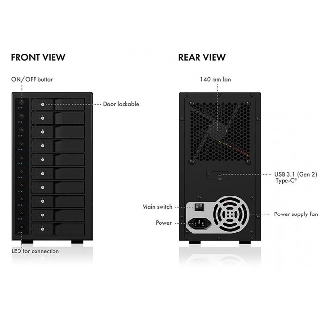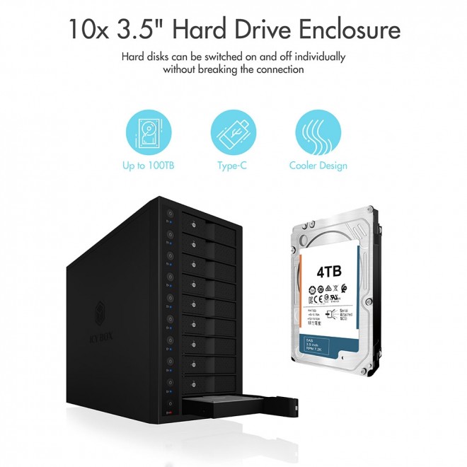 ICY BOX IB-3810-C31 SINGLE enclosure for 10x HDD with USB 3.1 (Gen 2) Type-C or Type-A interface