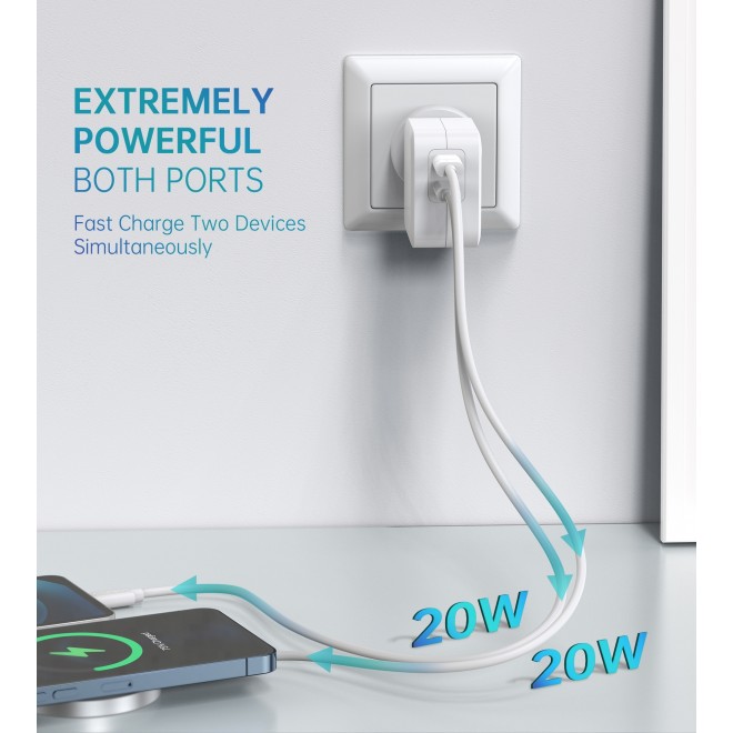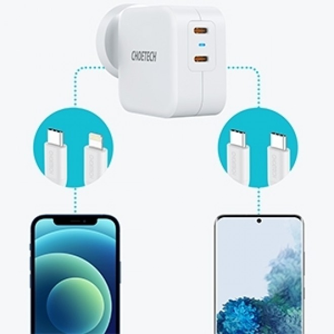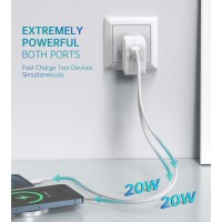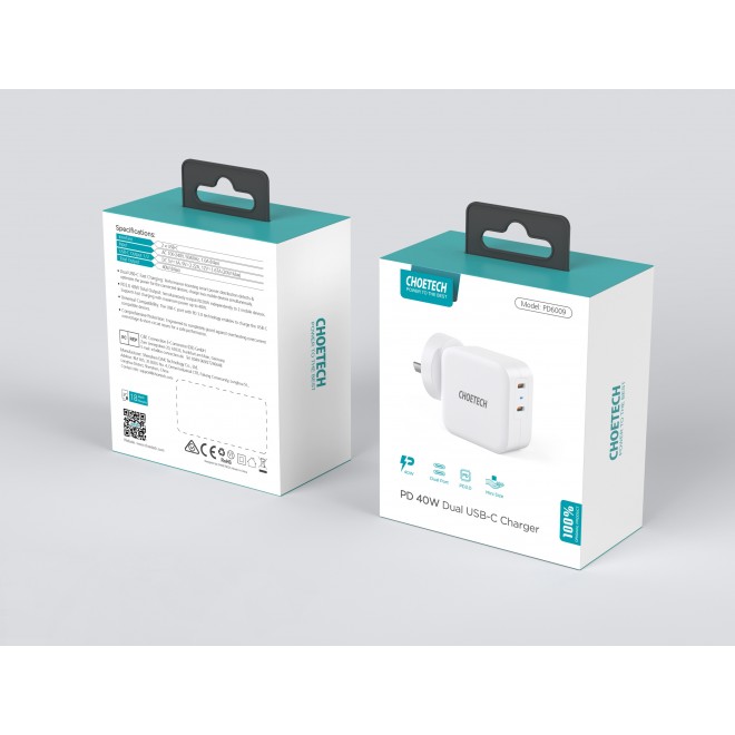 Choetech PD6009 40W Dual Fast USB C Charger 2-Port 20W PD 3.0 With Foldable Plug