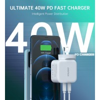 With a foldable plug and dual type c port in one charger plug, it's sleek and small enough to easily slip into your purse or pocket, making it ideal to travel with. With intelligent chip inside, the 40W Dual USB C wall adapter offers multiple safeguards against excessive current, overheating, overcharging, and more