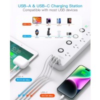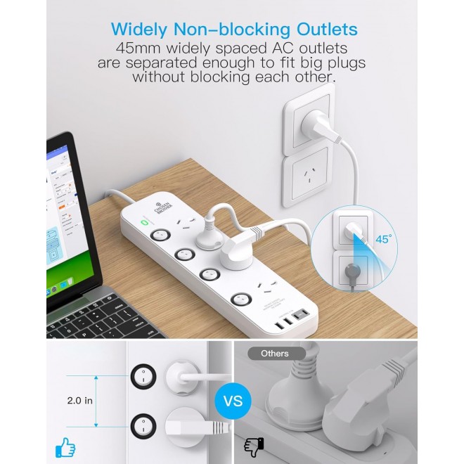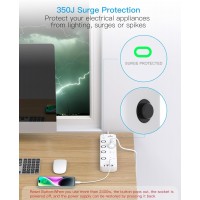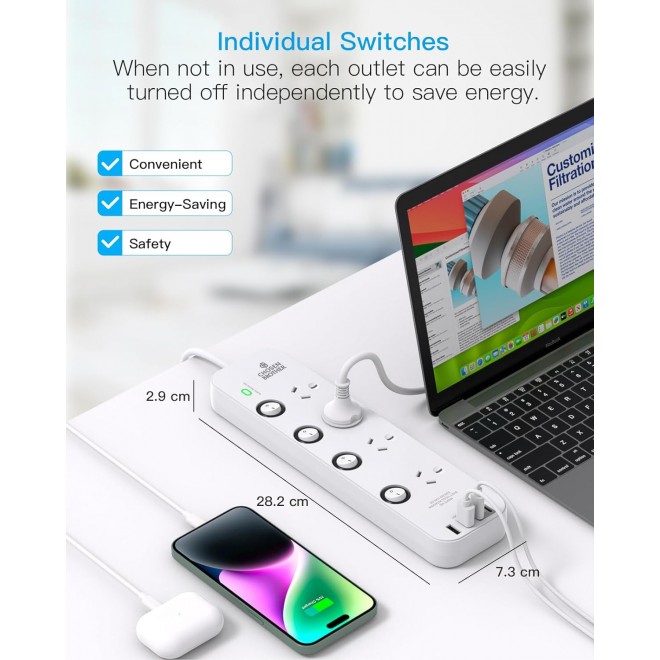 Chosen Brother Individual Switch Powerboard with 4 AC Outlets, 2 USB-A and 2 USB-C, Surge Protector 1.5M Extension Cord, 350 Joules, Overload Protection