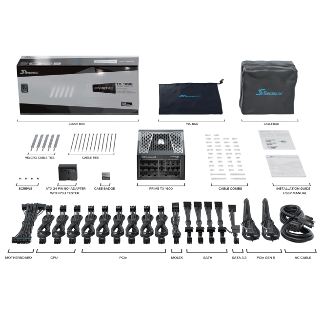 The Seasonic PRIME TX ATX 3.1 Series is built on top of all the great features of PRIME TX platform with added ATX 3.1 and PCIe 5.1 compatibility. Currently the 1600 W and 1300 W units are equipped with native 12V-2×6 connectors, Digital Fan Control, and 105°C-rated Japanese electrolytic capacitors guarantee unwavering power delivery and long-term durability. All these qualities make these power supplies perfect to welcome the newest high power graphic cards and processors on the market.