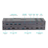 This KVM switch also features an integrated 4-port USB 3.0 hub, enabling you to simultaneously toggle both displays and connected USB peripherals. Four SuperSpeed USB ports offer data transfer rates up to 5Gbps, ideal for connecting devices like mice, keyboards, USB drives, printers, and more. It's backward-compatible with earlier versions of USB, HDMI, and DP, ensuring broad device support.